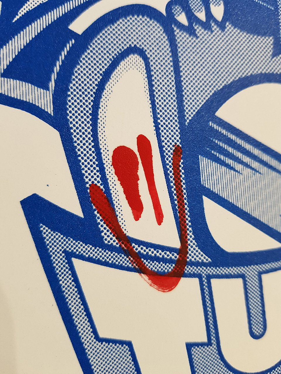 Tag eyes hand drawn with red alcohol marker