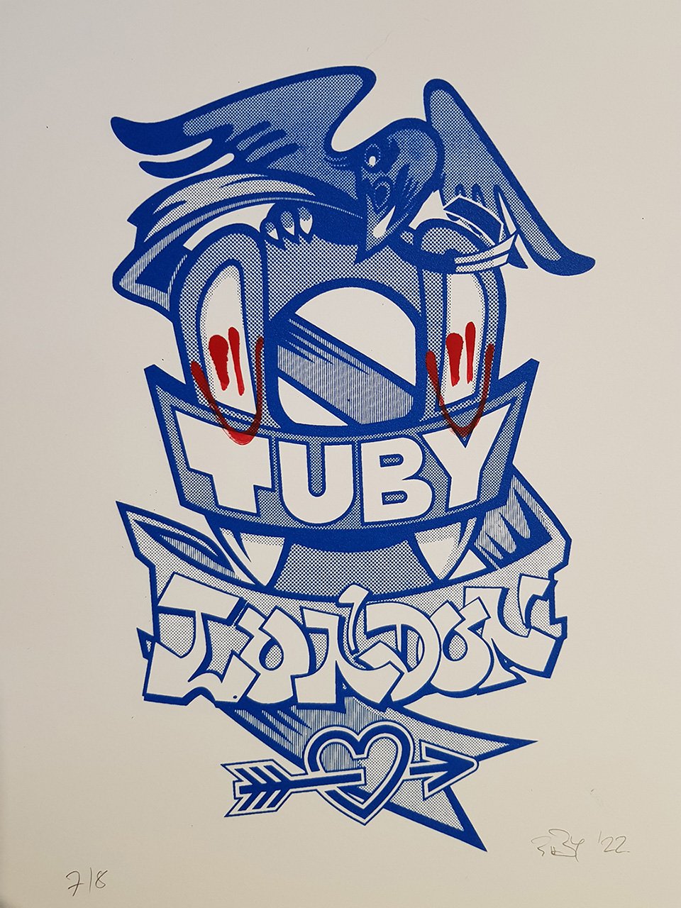 Created at a one day workshop these Artworks are the result of the first venture into screenprinting. There were only 8 made so are extremely rare instances of the Tuby Character